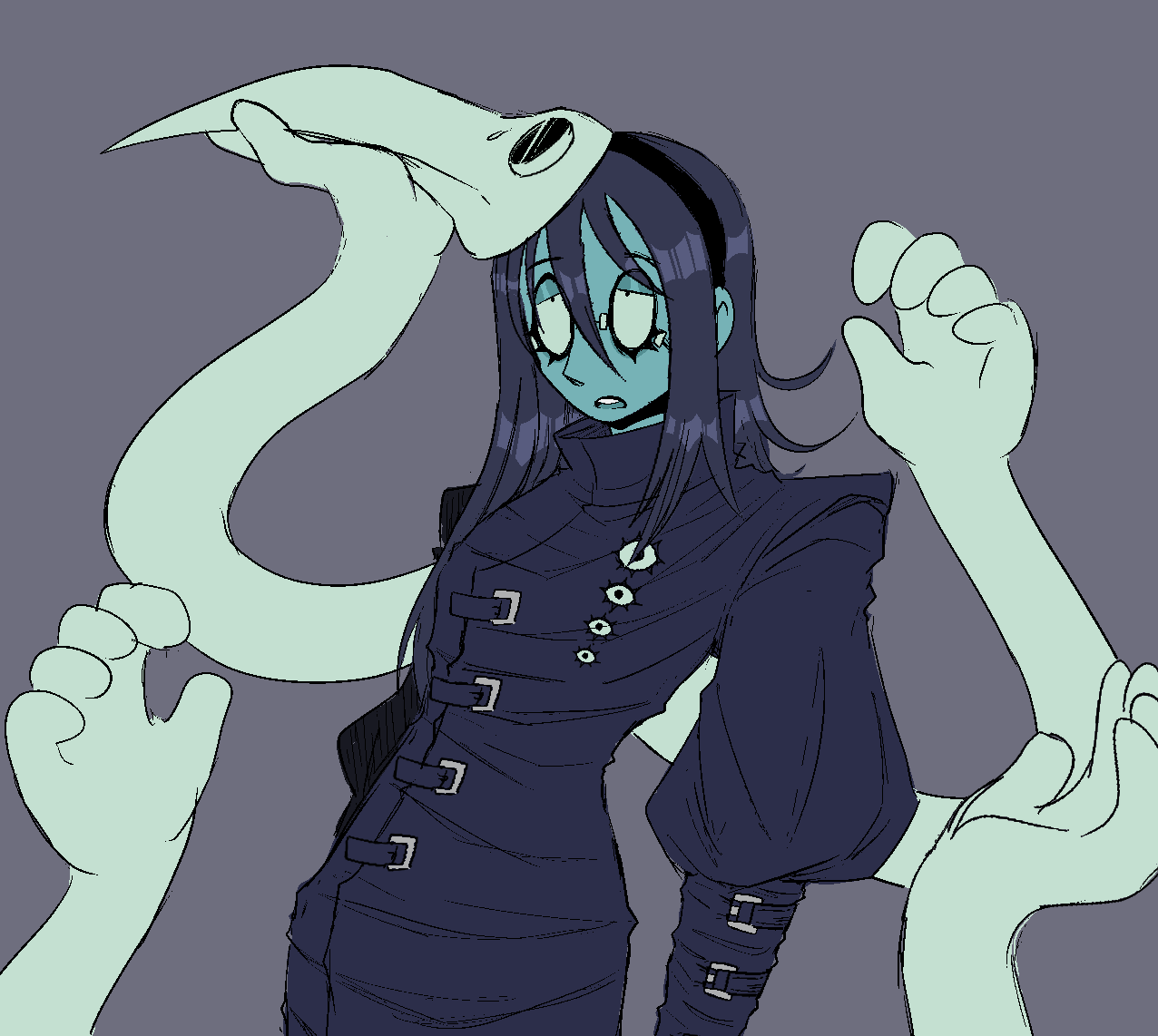 Her arms and hands are slightly disproportionate to the rest of her, much like a scorpions claws.